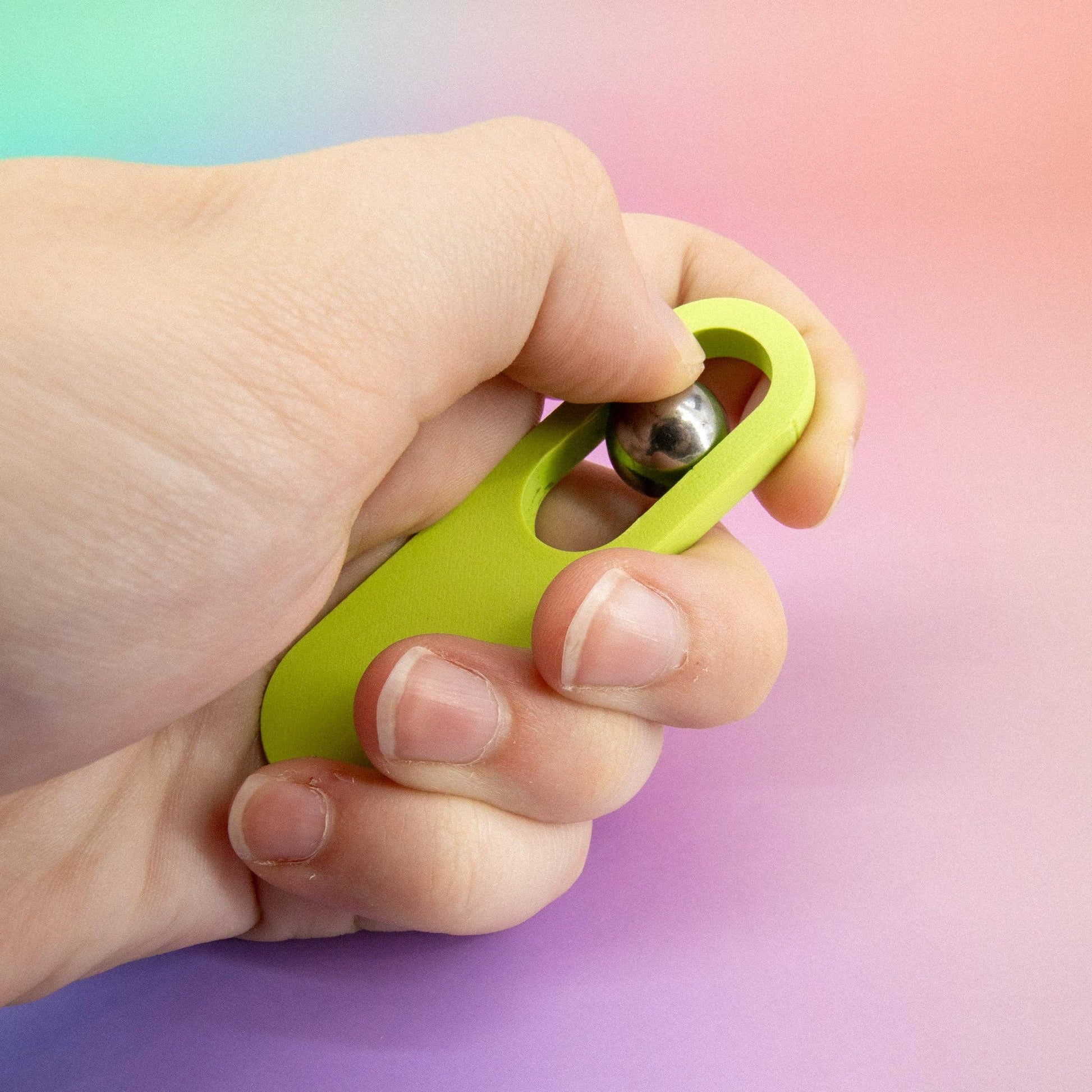 β 1 Green Oval Slider β smooth vertical track with a steel ball for a classic marble fidget toy movement